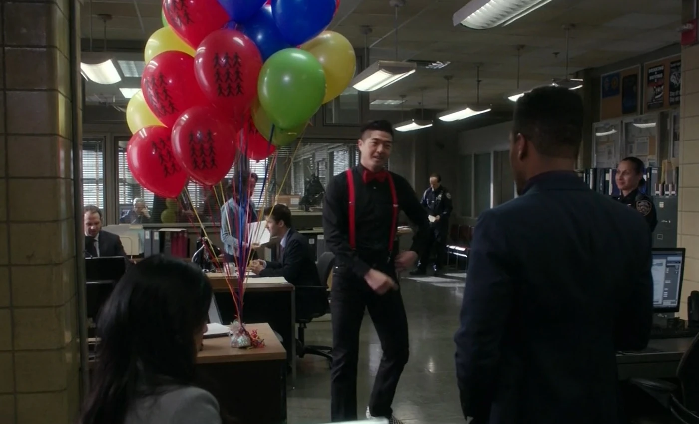 At the 11th Precinct, Gregson and Mallick argue in his office while Detective Bell tells Watson that the FBI loosening their surveillance of Rowan may have led to Garner's murder. A singing telegram man brings balloons and a message from Everyone to Watson. (♫ Hall & Oates - Private Eyes ♫) A man who has helped Rowan in the past, William Bazemore, recently withdrew just less than $10,000 to avoid being flagged by the IRS. Bell and Watson visit Bazemore who isn't helpful and doesn't believe Rowan killed Garner. After pressuring him, Bazemore shows them that the money was for his maid and says he won't tell them if he sees Rowan. At the Brownstone, Watson reports their failure with Bazemore to Holmes while he reports the same after talking to Garner's mother. Called to the precinct, they discover that Rowan has turned himself in and insisted on talking only to Holmes.
