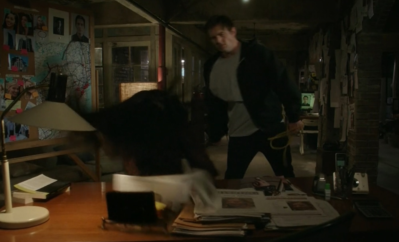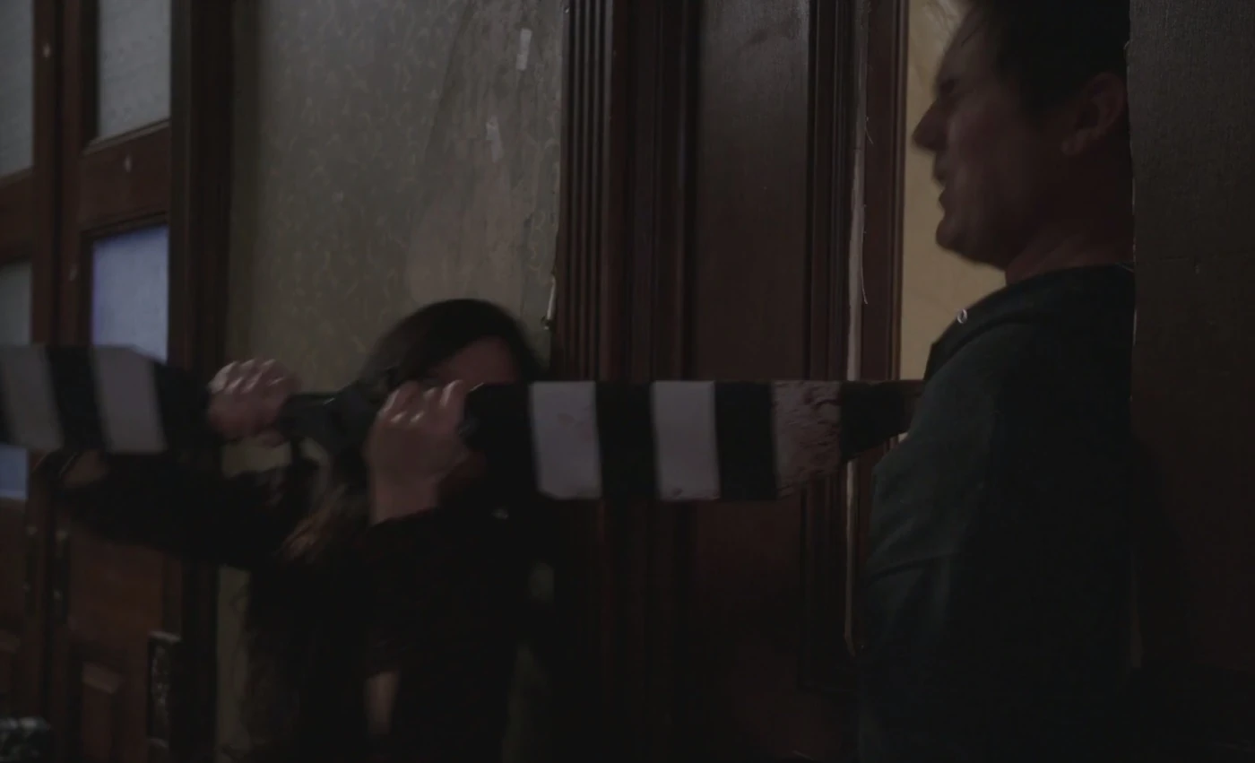 After Rowan kicks her several times, Watson drags herself upstairs. Rowan follows, and looks at pictures of himself on the evidence wall. Unable to escape via the front door, which Rowan has secured with rubber tubing, Watson locks herself in the room with the helicopter wreckage. Grabbing the rotor which has a jagged end, she stabs Rowan in the shoulder when he smashes a hole in the door. Carefully proceeding downstairs, she finds a blood trail and that Rowan has fled. In a hospital, a doctor reports that Watson has two broken ribs but no concussion. Gregson arrives and says that Rowan evaded the FBI by disappearing into a crowd in Times Square before going to the Brownstone. Police haven't been able to find him and Gregson assigns two officers to protect Watson who Holmes says will be going to her parent's house. Grim with determination, Holmes nods to Watson that he'll find Rowan.