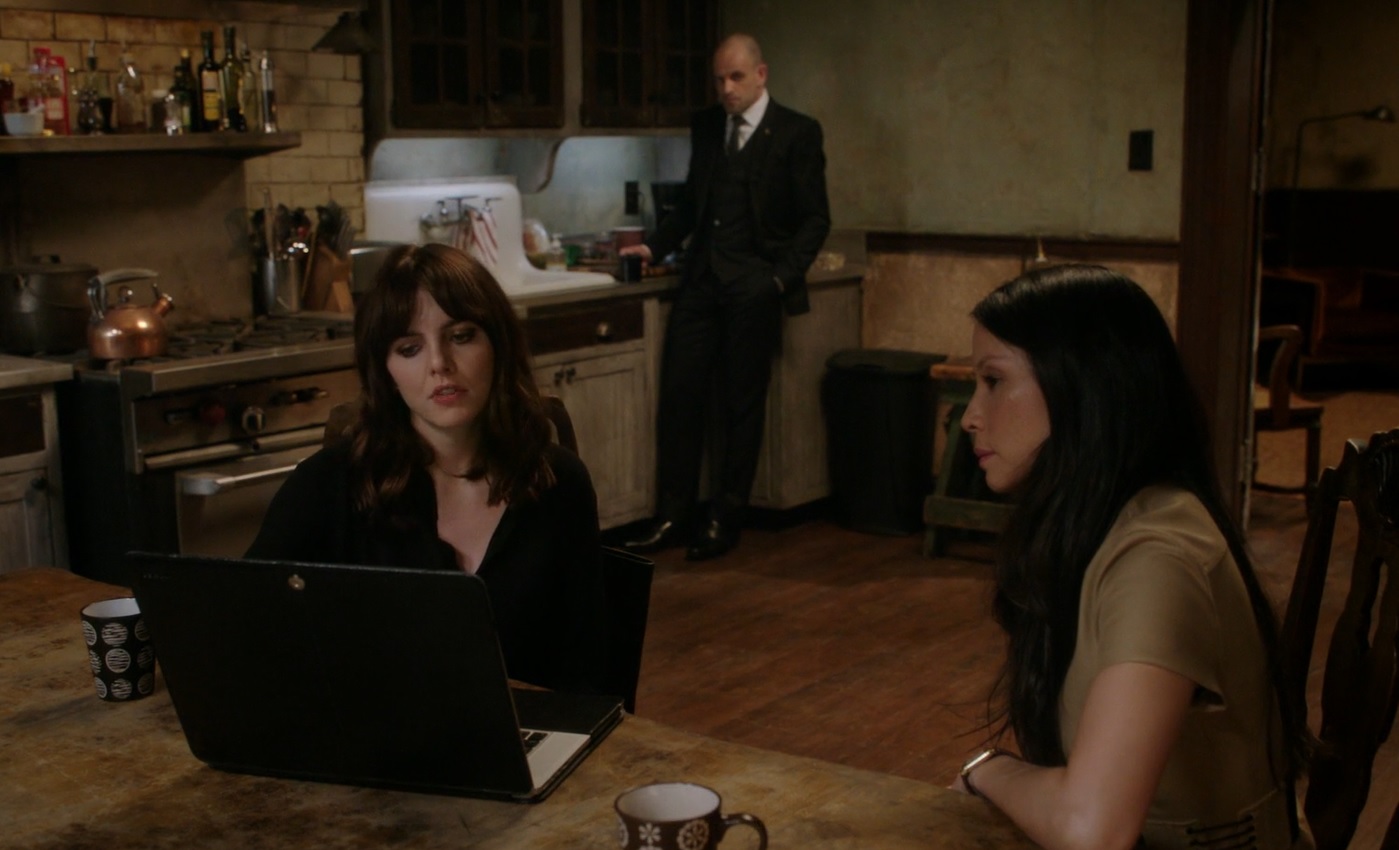 At 221A Baker St., Kitty talks to Watson while she builds an evidence wall of Lola Quinn and Archie plays. Watson complains about DCI Athelney Jones and that she misses Gregson. Despite Kitty's chiding, Watson won't admit she wants to go back to New York and confides that she gave up adopting a child, citing the dangers of being a detective and the incident involving Michael Rowan. Holmes sends Kitty to see tabloid owner Ruby Carville. Posing as a maid of Queen, Kitty can't get information from Carville about her relationship with Lola Quinn. Kitty also tells Holmes that Watson isn't happy living in London.[15]