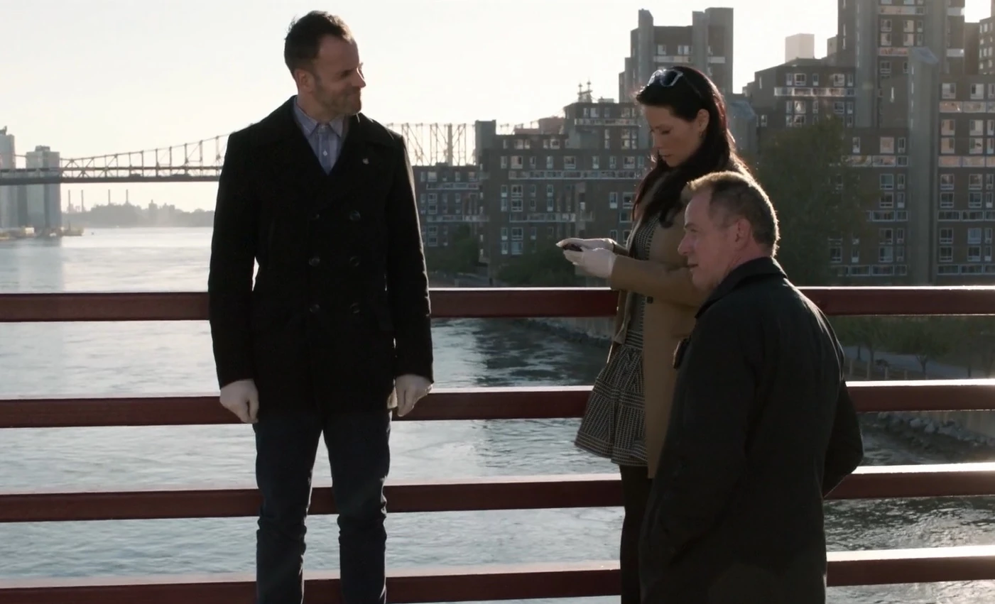 The next day at the precinct, Holmes rudely confronts Coventry for providing their home address and ruining any possibility of surveilling Bundsch. Watson demonstrates that several other women disappeared who lived in buildings where Bundsch worked as a mover. Coventry dismisses their findings and leaves. Still miffed at Holmes, she proposes speaking to the husband of one of the women with Bell. Watson and Bell speak to Tim Spalding, whose wife Kathy disappeared but her body hasn't been found. He doesn't know Bundsch and mentions that he's a member of an on-line grief support group. At a bar, Gregson confronts Coventry about his insubordinate behaviour. (♫ Rolling Stones - Time Is On My Side ♫) Coventry thinks Gregson a fool for giving Holmes his support and threatens to go to the police union if Holmes isn't taken off his case.