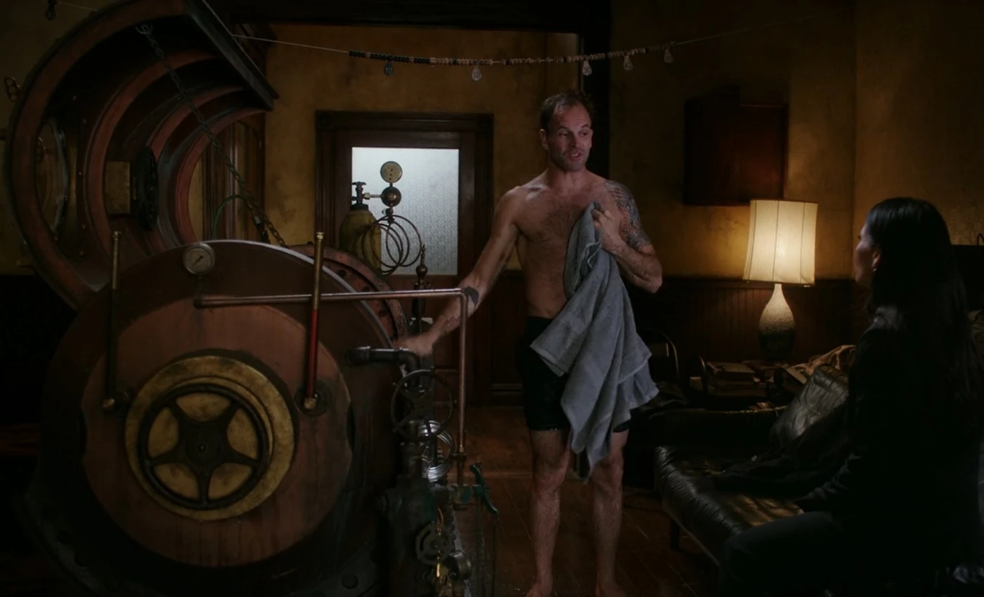 At the Brownstone, Holmes exits the Victorian tank to find Place's "fixer", Mr. Clay, waiting for him. Clay brings an alibi for his whereabouts when Reed was killed and admits he planted the bug to monitor Kapoor's conversations with Reed. He says that the company secrets Kapoor mentioned in the sessions weren't acted upon by Reed and there was no leak. However, he destroyed the recordings and insists that nothing useful was recorded when Reed was murdered. Holmes asks him to repeat what he heard on the tape when Reed was murdered which Clay thinks is gibberish but Holmes recognizes. Holmes tells Clay he knows who murdered Reed and showing that he's been recording their conversation, he threatens Clay's life if he doesn't leave. Later, Bell and Holmes interrupt Demopoulos who is having a session with Kapoor at his hospital bedside. Accusing Kapoor of Reed's murder, they usher Demopoulos out of the room and shut the door.